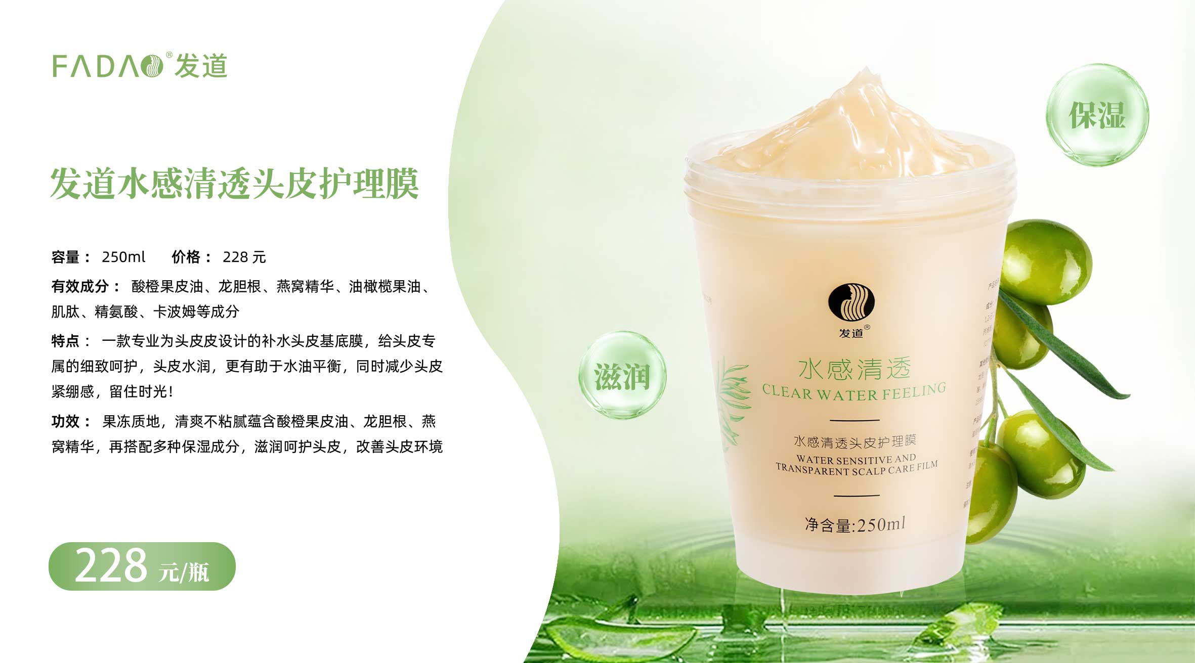 - 关键词:发道水感清透头皮护理膜